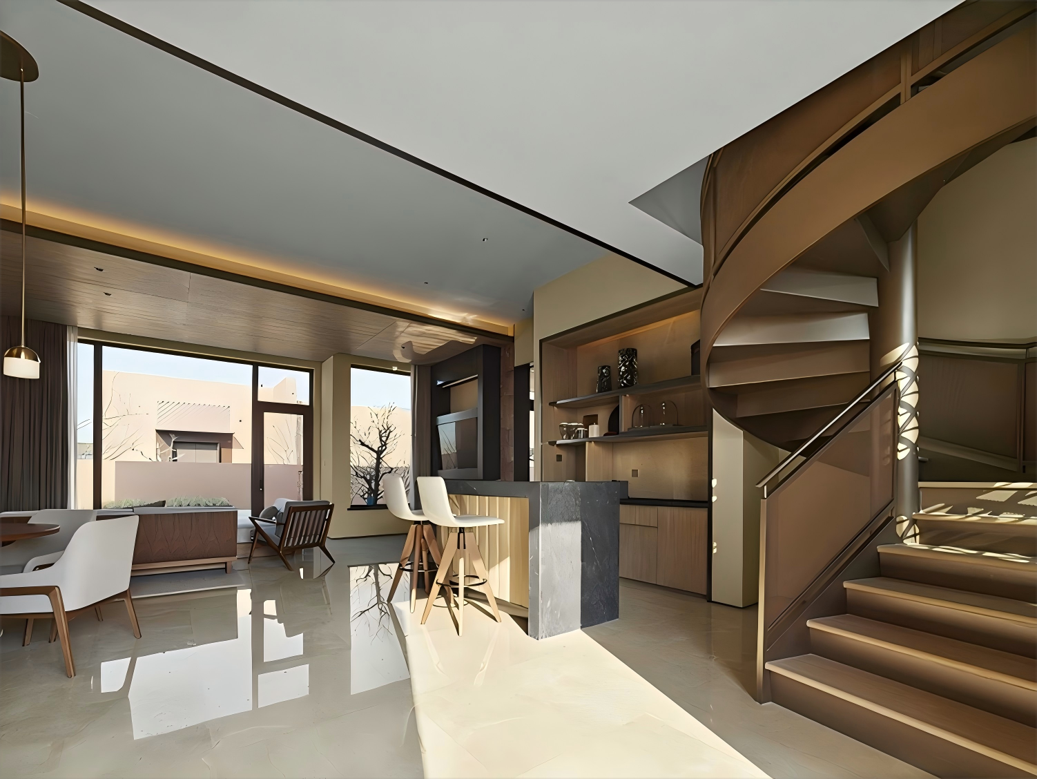 The fixed furniture in the public area is the skeleton and vein of